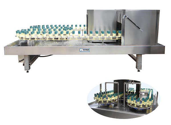 SYGZ-26真空负压自动灌装机 该机灌装质量高,液面高度一致,密封程度 高,易清洗,采用变频调速,可任意选择工作速 度,工作平稳可靠,无冲击...